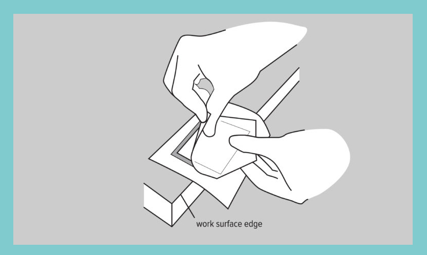 Once secured on the second transfer, peel back the edges of the first to double check that all the sides are even. Make small adjustments as needed.