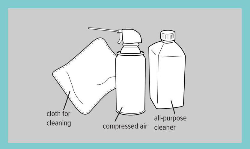 Clean the surface with all-purpose cleaner, a cloth, and compressed air.