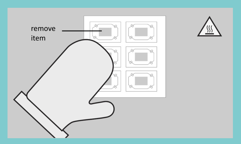 When the sublimation process stops, remove immediately the transfer paper off both sides of the ornaments and allow the product to cool down.
